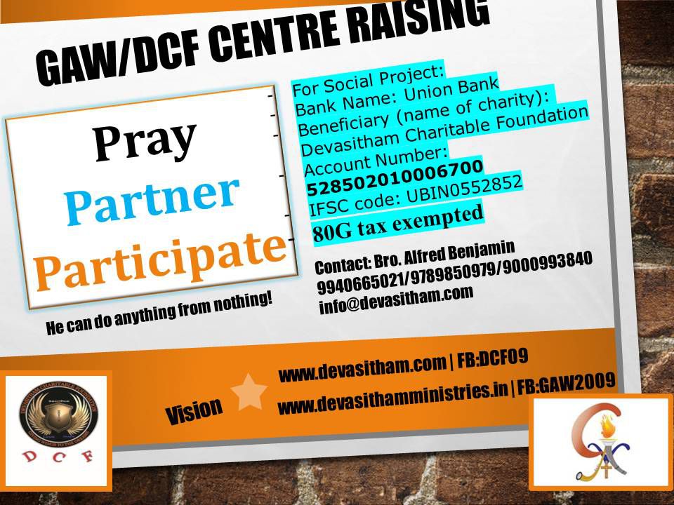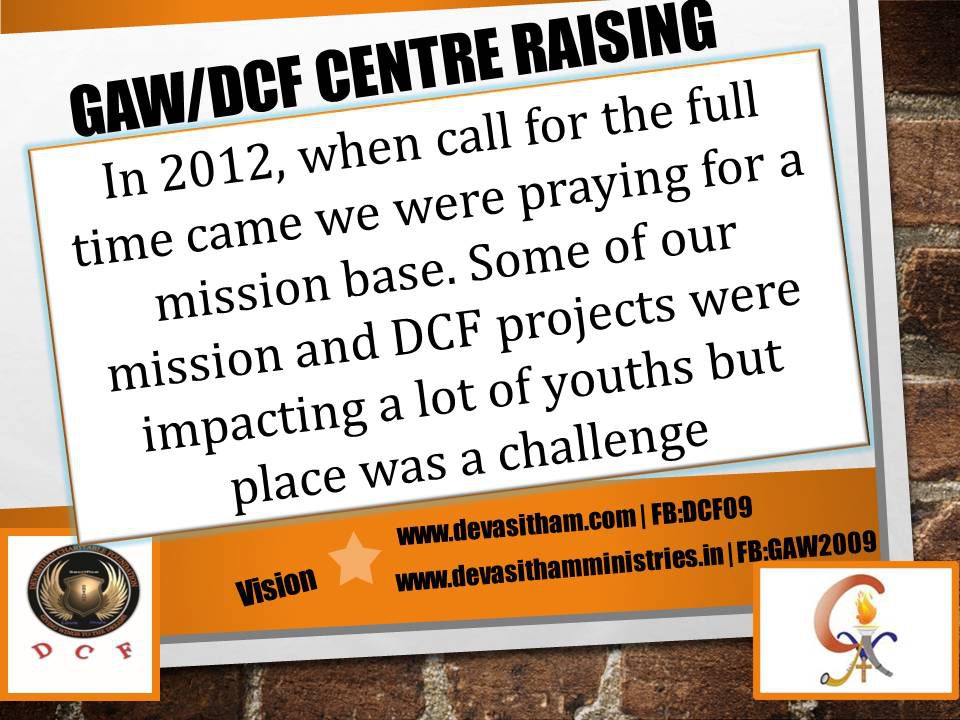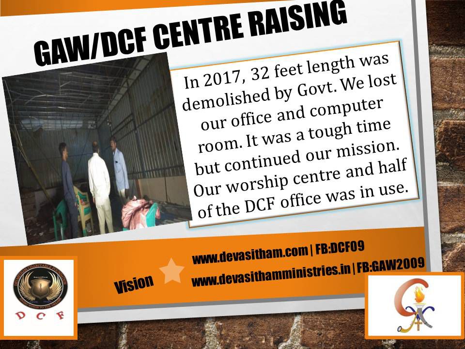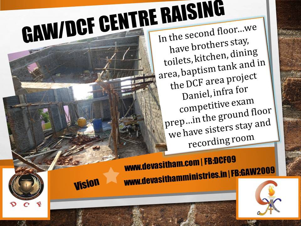 From a roof top to nomadic moves and GS sheeted halls and now moving to raise a proper building for our trivision and mission calling. Now we have an appeal to all those who love God and mission for the poor and disabled to join hands to make this dream come true.